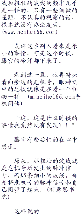 藤宫一脸吃惊的看着那个画面,那像是一个声波显示器,有一条线在不停的变化,而在这条粗壮的线旁边,有一个细小的,不容易被发现的小声波线。