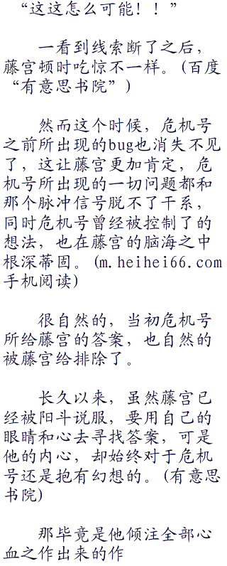 藤宫顿时瞪大了眼睛抬起头来,用诧异的眼神看向旁边的光量子电脑危机号,他连忙手忙角落的跑到了有提示声的红灯旁边,俯耳仔细倾听了起来。