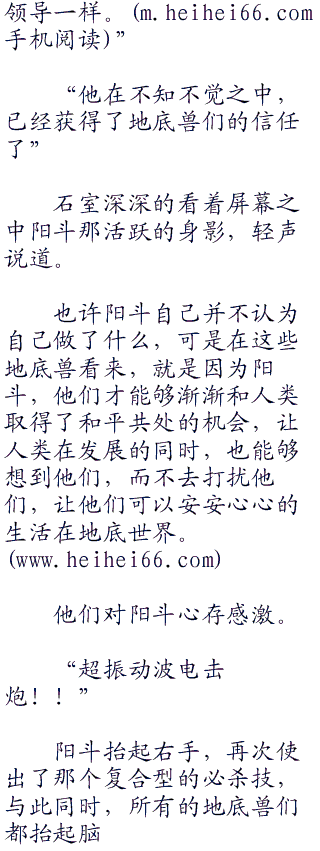 阳斗惊喜的看着那个高傲的身影,仲耐尔对阳斗说道:“这是地球的危机,壬龙大人带领我们所有地底兽都来帮忙了,我们要展现我们的态度,地球是我们的地球,不容许别人插手!”