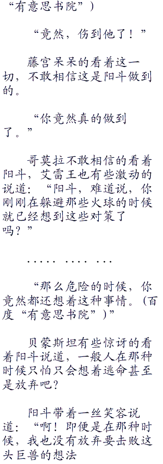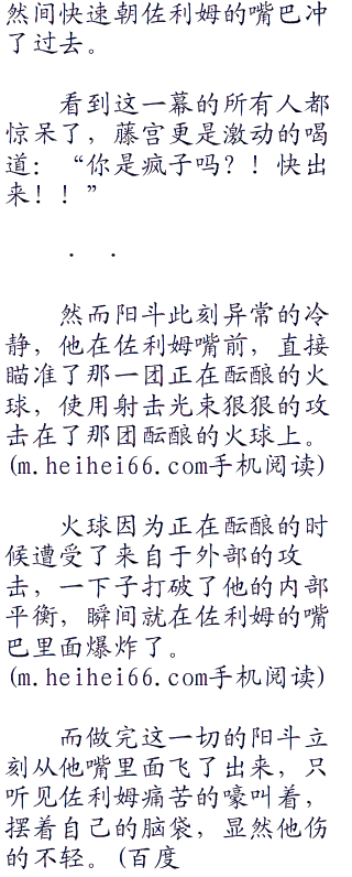 阳斗强忍着身上的不适,尽力露出笑容对哥莫拉他们说道,为什么会笑着?因为阳斗心中已经想到了办法。