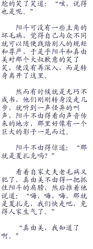 阳斗抱着孩子一脸无语的看着真由美说道。
