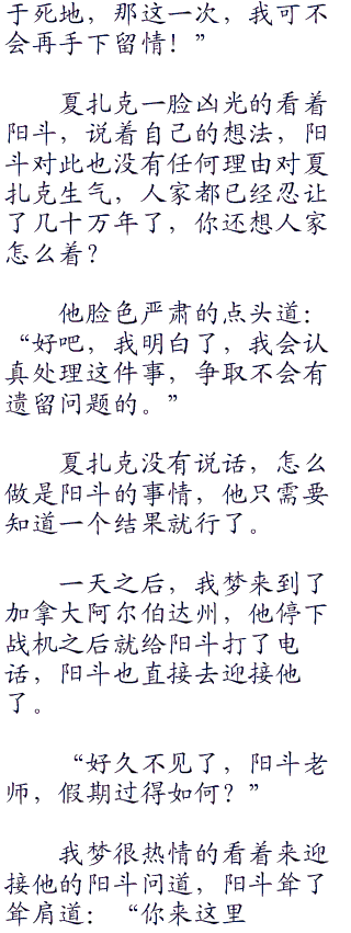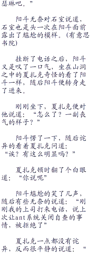 就在阳斗和夏扎克日常性的聊天的时候,阳斗的电话响了,阳斗对夏扎克笑道:“抱歉,我先接个电话。”
