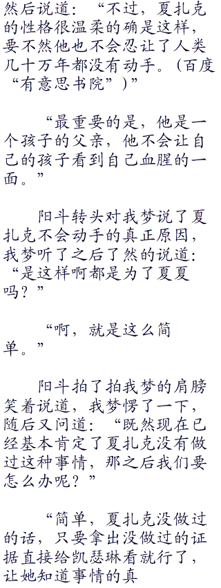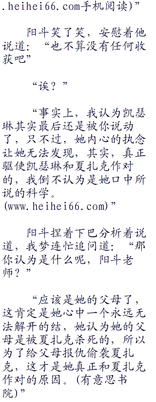凯瑟琳面皮抽了抽,她承认,我梦说的话是很有道理的,可是,就情感上而言,她对夏扎克的仇恨不仅仅只是因为ant系统,最重要的还是当年凯瑟琳的父母为了获取那些关键的数据进入了森林之中,然后就此一去不回。