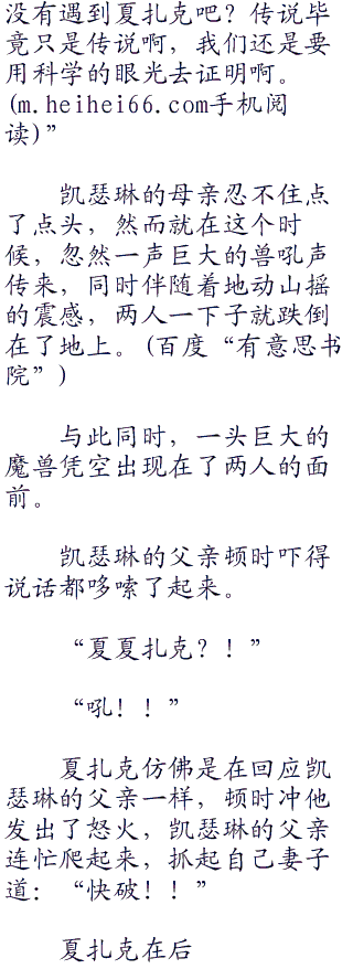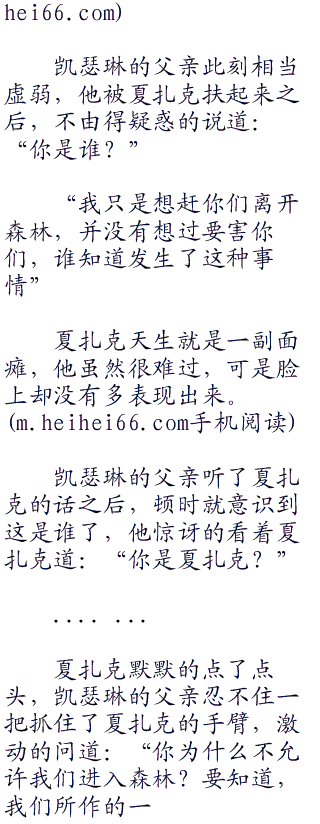 “我可不知道,只是传说都在说,只要是进入了森林的人类,都会被夏扎克抓来吃掉,嘛,也许只是传说而已,你看我们不是已经进来了还收集了一部分资料了吗?”