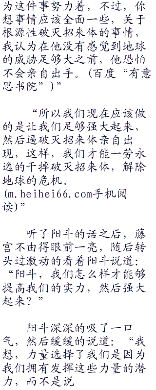 “所以想要关闭虫洞,根源在于消灭破灭招来体,藤宫,你所想的这个办法可以说是治标不治本。”