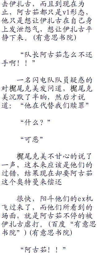 而战场上,阿古茹的表现却完全和阳斗所说的大相径庭,他是真的被伊扎古压着在打,最让梶尾克美他们觉得奇怪的是,阿古茹完全是只挨打不还手,完全不攻
