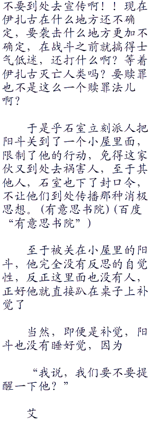 然后这些人又开始自发的宣传,没有过半天,xig基地基本上都出现了和阳斗同样的症状,士气为零