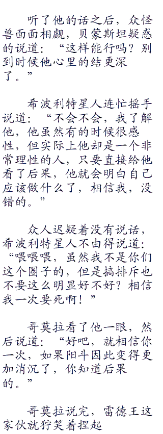 另外一半,阳斗和我梦见面之后,我梦顿时吓了一大跳,他还从来没有看过阳斗这么士气为零的样子呢,而在阳斗说出自己的那个梦之后,我梦的士气也毫不例外的变成零了