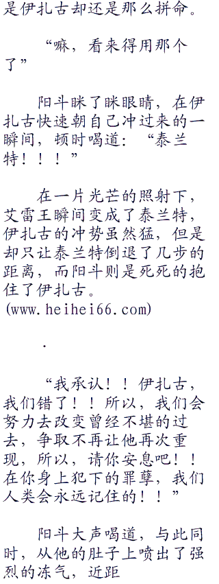 阳斗一边愤怒的说着,一边一把伊扎古提了起来,然后重重的摔到了另外一半的空地上。