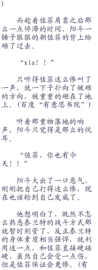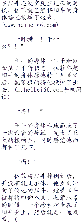 佐菲的飞踢非常有力,要不是泰兰特的身体素质实在是非常好,阳斗感觉自己即便是防住了恐怕也会被踢飞。