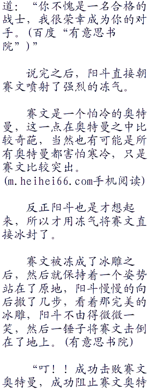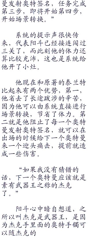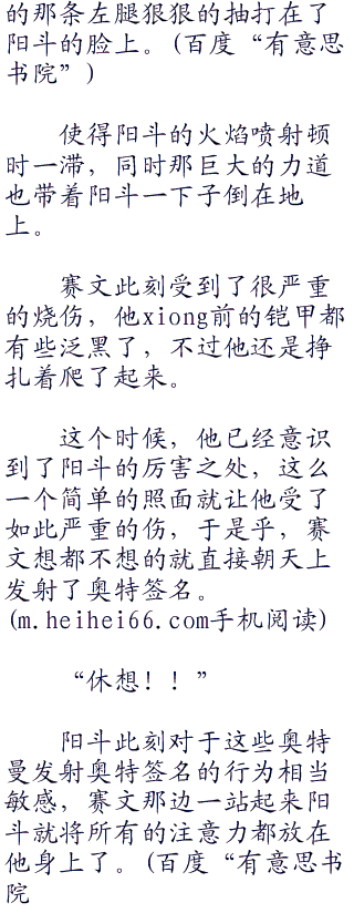 阳斗没好气的一边咳嗽着一边看着赛文说道,然而赛文是不会理会阳斗的,迎接阳斗的,是赛文的原地高踢。