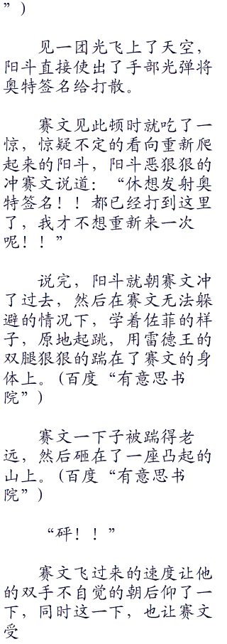 战斗一触即发,赛文一上来就是一套连环拳,招数很老道,阳斗没有闪开,硬吃了几拳。