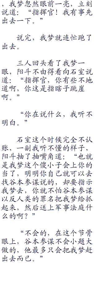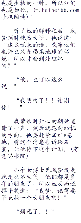 而他那位朋友虽然是做研究的,但是并不代表她不会看脸色,所以看我梦的脸色,再加上之前电话里面的语气,她就觉得我梦是有心事,她不由得开玩笑道:“怎么了?被女朋友甩了吗?”