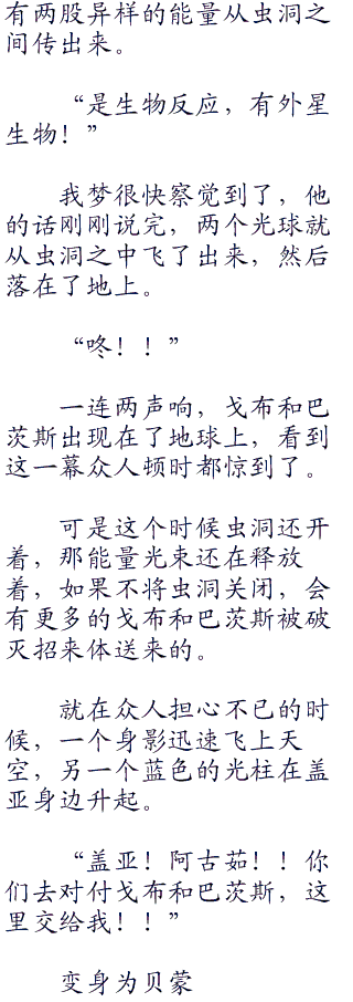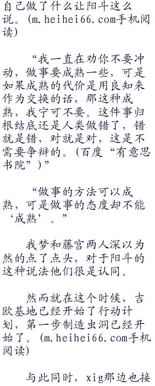 藤宫将我梦从地上拉起来之后,对他说道:“这项虫洞技术一开始本来是用于向宇宙探索,向宇宙传递地球友好而开发的,可是现在”