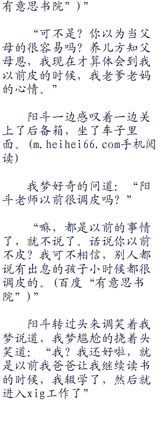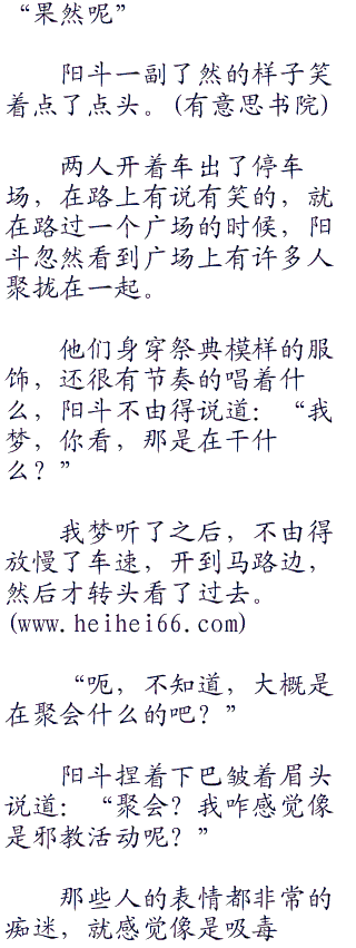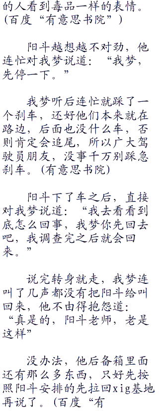 我梦在车上应付着阳斗的话,两人是相约来到地面上的,我梦负责开车,阳斗负责坐车