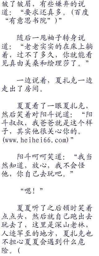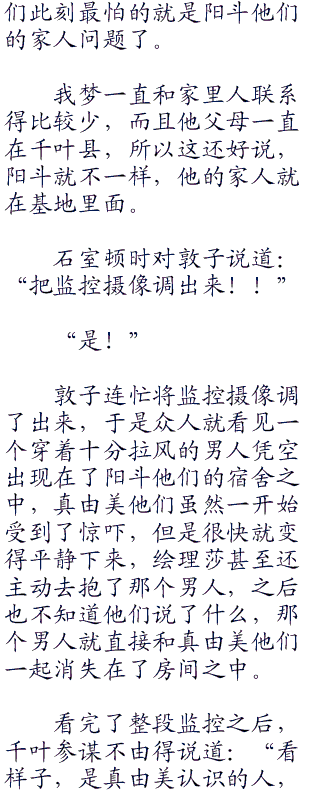 阳斗知道夏扎克说的是实话,但是他心中实在是担心家人的安全,夏扎克作为一个父亲,也理解阳斗关心家人的心情,于是对阳斗说道:“如果你能老实的待在这里,我可以帮你去把真由美桑和绘理莎接过来。”
