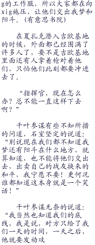 夏扎克认真的看着阳斗说道,阳斗皱眉道:“不可能!现在这种情况下,那些人很有可能向xig施压,也就是说,真由美甚至是我女儿绘理莎都会受到影响,我必须马上回去。”