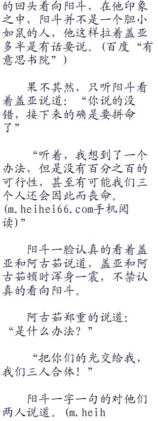 阳斗的这个问题让盖亚和阿古茹都是一愣,他们完全不明白在这个关键的时刻,阳斗忽然问这么一个问题干什么?