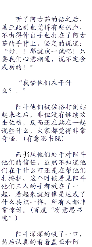就在盖亚和阿古茹正在想办法准备继续出击的时候,阳斗忽然出声唤道。