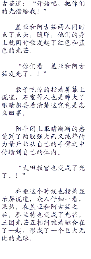 盖亚和阿古茹见阳斗问得这么认真,于是便将他们如何取回力量的过程告诉了阳斗,原来真的和阳斗想的一样。