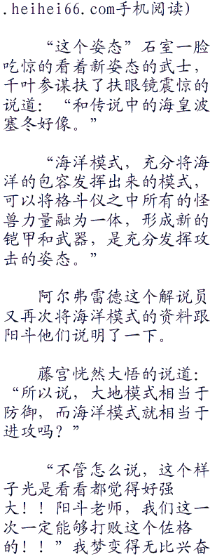 “大地模式,可以让使用者获得大地那无穷无尽的力量,只要你还站在大地之上,就可以从双脚吸收大地能量,用这些能量供给格斗仪之中的所有怪兽生存所需要的能量,他们就同时从格斗仪之中出现为你战斗。”