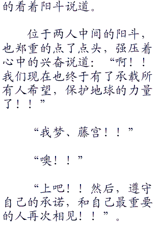三人在这一刻,全身心的融为一体,大地的红光,大海的蓝光,加上阳斗自身所带着的希望之金光,三种光芒一下子从光球之中冲天而起,像是三条龙一样互相嬉戏着最终融为一体。