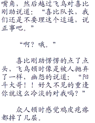逗比队长喜比刚助,严肃沉着,飞行技术优秀的辛田敏行队员,射击技术牛逼,喜欢研究古物但是对书法不精通的神射手狩矢幸平。