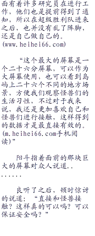 “2年后,tpc开始重视怪兽岛的发展,成立了巨大生物生命科学研究所,对其进行开发和研究,多年来我们对这座岛屿的环境进行改进,让他变得更适合怪兽们的生活,经过我们的不懈努力,最终,就成为了你们现在所看到的这座岛屿了。”