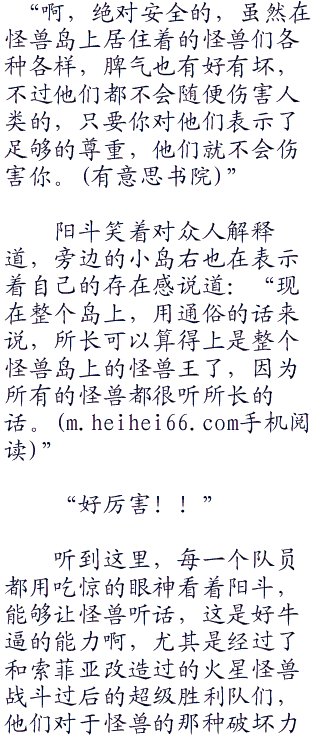 阳斗一路上给喜比刚助和他的队员们讲解着这座怪兽岛的发展历史,众人都了然的点了点头,从踏上怪兽岛开始,他们就感觉好像来到了另外一个世界一样,这里“六三七”简直就像是原始森林一般。