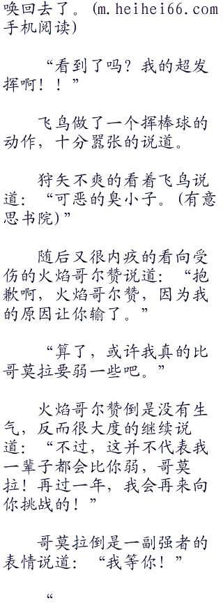 飞鸟顿时不爽的说道:“哼!这句话是我的台词!”