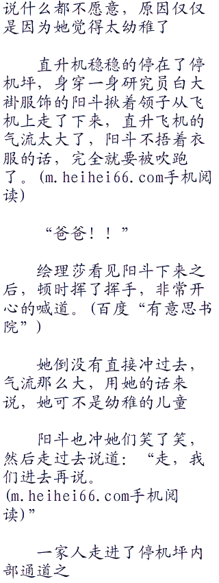 直升飞机直接飞到了tpc总部的停机坪,真由美带着绘理莎早早的就在这里等候了,对于几个月没有见到的丈夫,真由美甚为想念。