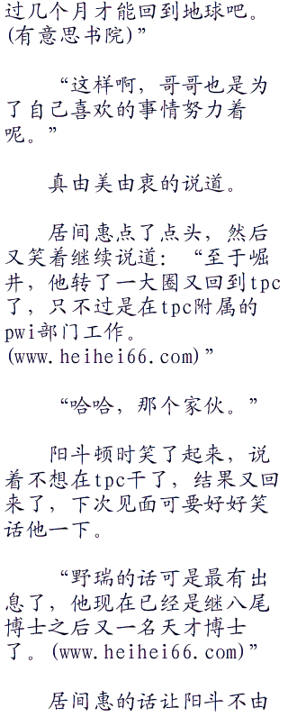 “呐,阳斗,真由美,你们过得如何?阳斗,听说你被调到怪兽岛去工作了,怎么样?工作还顺利吗?”