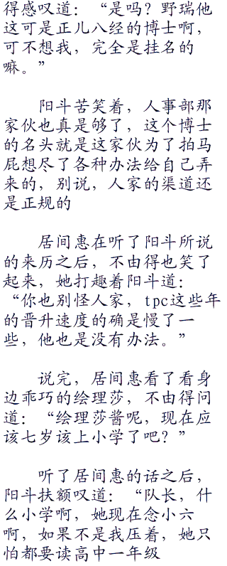 之后居间惠邀请阳斗他们坐下来喝茶,然后又亲热的把绘理莎抱在身边,就像抱着自己的孩子一样。