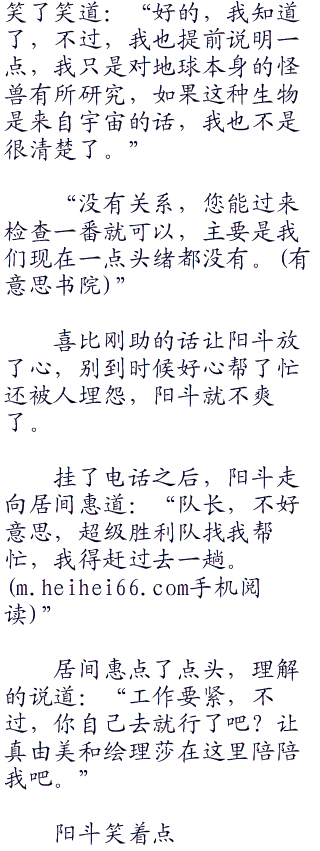 电话里面传出了喜比刚助的声音,阳斗有些意外的说道:“喜比队长?”