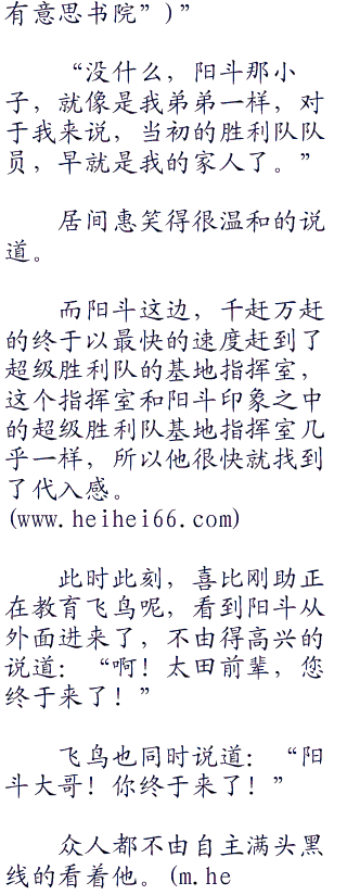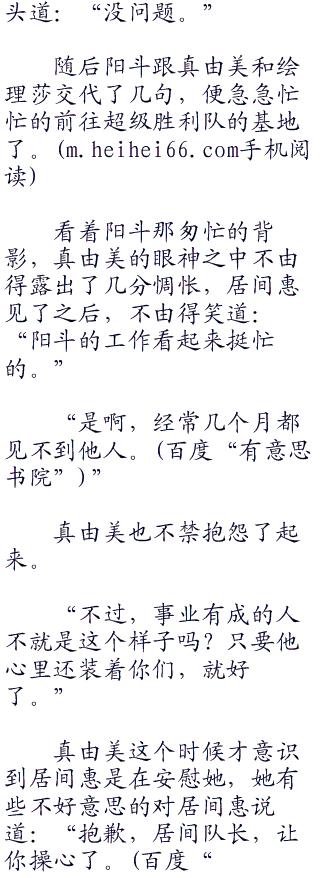 阳斗听了居间惠的话之后不由得愣了好久,他看着绘理莎一副终于有人理解我的表情之后,也貌似认识到自己错在什么地方了。