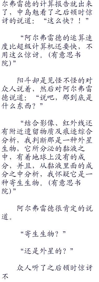 阳斗看向中岛勉说道,中岛勉点了点头道:“没错,我也是这么认为的,只不过我们缺少研究资料去调查这是什么生命体。”