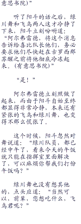 而这个时候,飞鸟却说道:“可是人如果不用吃饭了,那活着还有什么意义啊?而且如果人都不用吃饭了,那还有谁会为了生存而努力啊?”