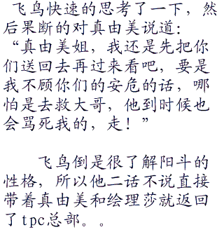至于他们说的是什么事?在飞鸟看来反正不是什么大事,他在侦察飞行的时候,速度超过了规定的三倍