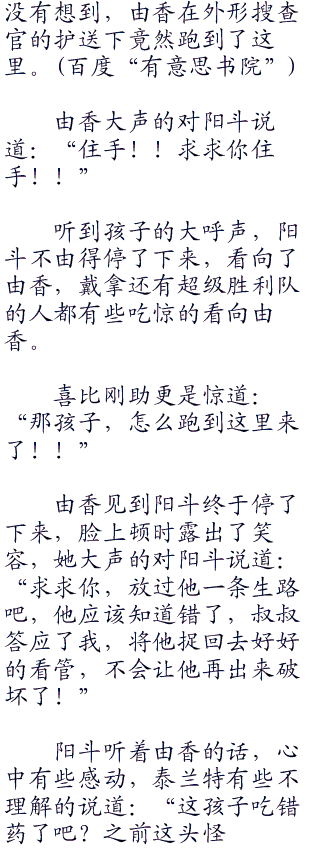 趁着加比休头晕眼花之际,阳斗立刻冲上去就是一顿暴打,ex泰兰特的力气相当大,不一会儿就将加比休打得全身都是伤。