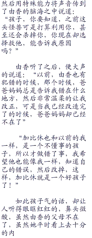 加比休猛则猛矣,可毕竟只会利用别人的心灵,而不是依靠自己的实力,就这一点来说,泰兰特比他胜出百倍。