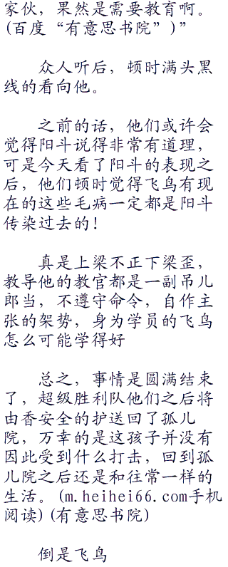 听到飞鸟的声音,再转过头看着飞鸟那得意的样子,众队员齐齐低下头,用手掌撑着额头,齐齐说道:“这个笨蛋”