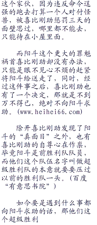 所以喜比刚助顿时觉得气闷不已,然而这个时候,某个愣小子竟然还傻兮兮的从森林里面跑出来,一副很得意的样子挥着手,大声的喊道:“喂”