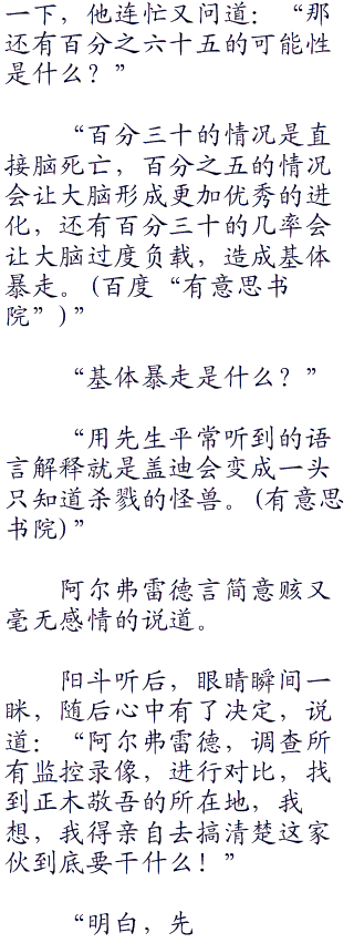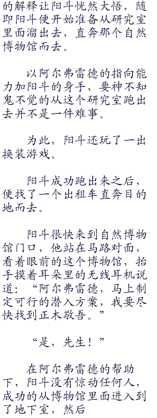 阳斗为了不打草惊蛇,所以没有过度的去探索,反正只要知道他在那里就行了。
