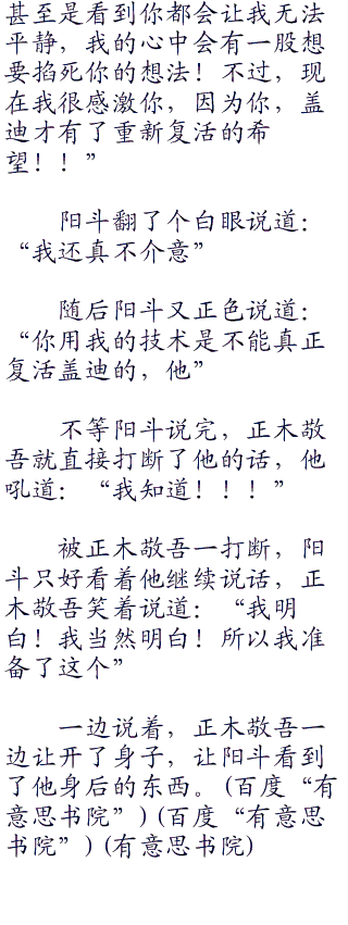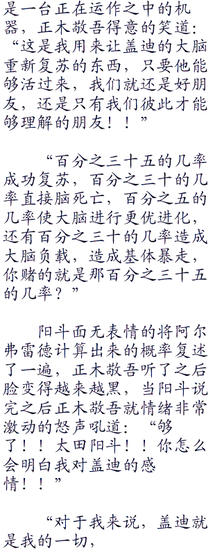 正木敬吾此刻的表情显得非常悲伤,他惆怅的继续说道:“对于那个时候的我来说,恐怕盖迪就是唯一能够理解我的人了。”