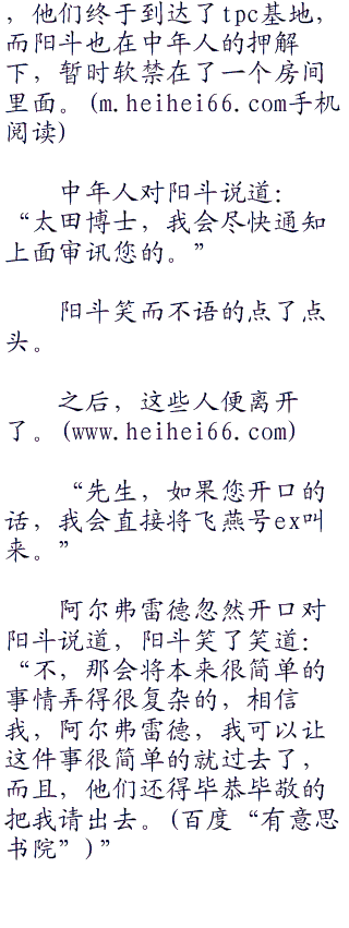 中年人多看了他一眼,然后二话不说便直接对身边的部下挥手,将阳斗带上了武直,一路将他带回了tpc基地,让阳斗接受调查。
