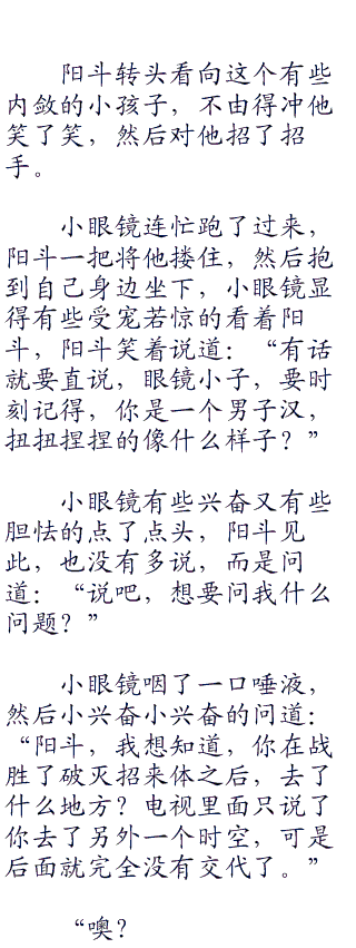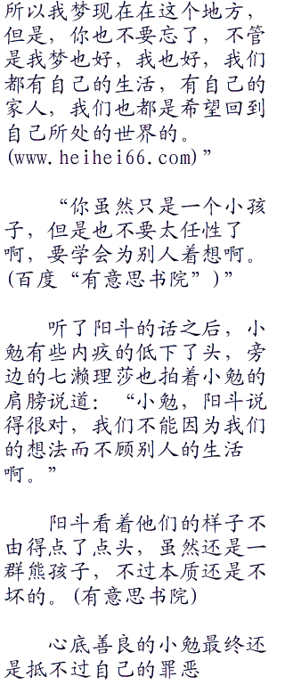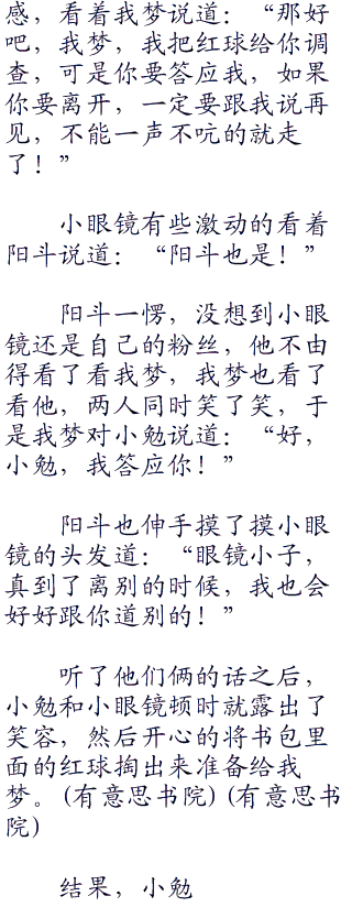 阳斗见此,不由得笑道:“喂,小勉,别太得寸进尺了啊。你的愿望是希望看到我梦,