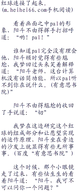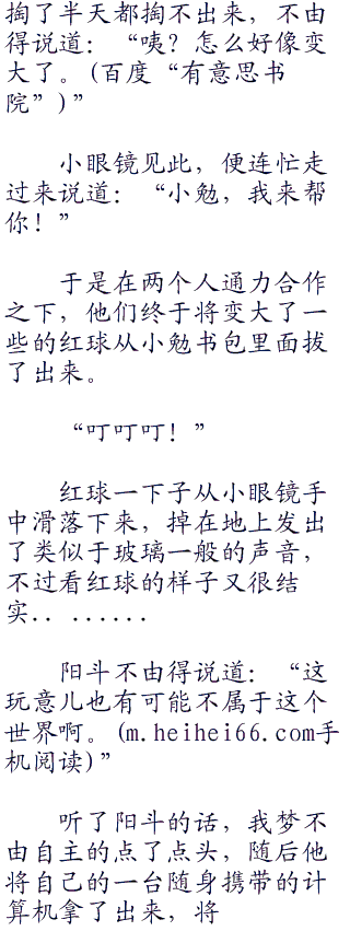 很快,我梦想到了那个红球,也就是将他们召唤过来的东西,于是我梦转头对小勉说道:“小勉,能不能让我调查一下那个红球。”