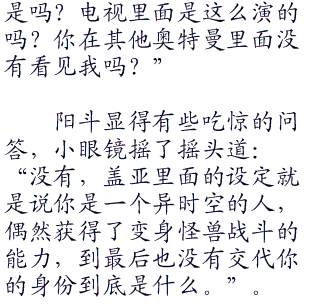 此时此刻,阳斗和我梦正在那个小屁孩所谓的秘密基地里面,那个小屁孩名叫新星勉,就是一个普通的小学生,而这个世界观,也如同阳斗所想的那样,是一个综合的现实世界,这里有着拍摄所有阳斗所熟悉的奥特曼的历史。
