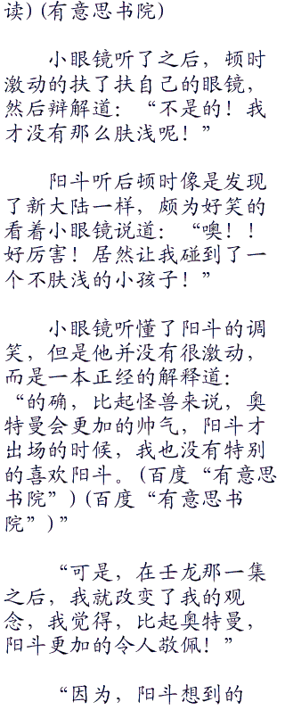 小眼镜顿时惊讶无比,不过他忽然想到了什么,随后说道:“啊!我知道了!!是那一集,迪迦里面的那个魔人查理迦那一集,原来阳斗你也有参与啊!”