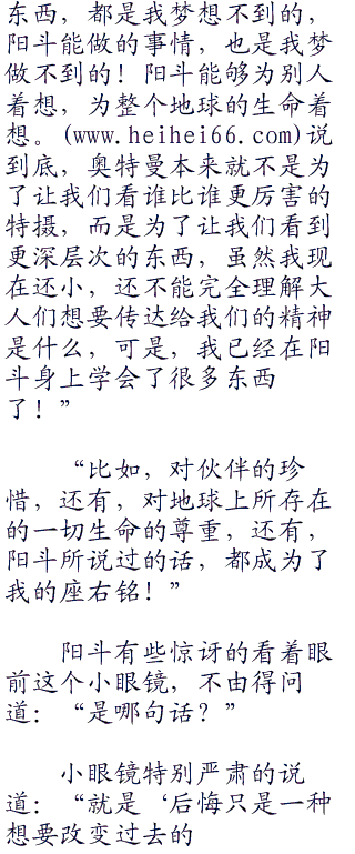 小眼镜顿时对阳斗更加崇拜了,阳斗不由得哈哈笑道:“我认识的奥特曼还有很多呢,随便跟你说一句,我跟初代奥特曼也有接触过噢。”